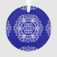 This white mandala sits on a bright, deep blue background. The colours are intelligent and introspective. Part of the Rosenn Mandala Collection.