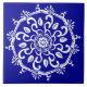 This white mandala sits on a bright, deep blue background. The colours are intelligent and introspective. Part of the Payon Mandala Collection.