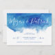 Affordable custom printed wedding invitations with an abstract blue watercolor background and modern hand-lettered style typography. Personalize it with your names and wedding invitation details. Use the design tools to change the text fonts and colours or add additional text and photos to create a unique one of a kind design. A stylish and fun invitation design, perfect for a destination wedding on the beach!