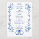 Wedding program bells design. Customise this blue wedding order of service with your wedding details. Should you require any help with customising then contact us through the link on this page. Sapphire coloured bells design personalised wedding program