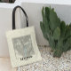 These bags were super cute (I purchased 3). The material is more of a canvas look & feel. The colour of the bag is slightly off white, but the letters look exactly as pictured. I took 3 photos in different lighting. Would recommend! I liked how there was an option to choose the font and colour of the name. The words are legible and the colours are exactly as pictured.