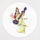 Honor the divine source of knowledge, arts, and music with these elegant labels featuring the Hindu Goddess Saraswati. The design typically depicts the goddess seated on a lotus, playing the veena, and holding a book and a mala. These personalized labels are perfect for sealing envelopes, marking prayer books, gifting to spiritual friends, or decorating items for religious festivals like Saraswati Puja or Diwali.
