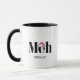 Looking for a personalized mug that perfectly captures your apathy toward Christmas? Look no further than this "Meh" mug! Featuring the word "Meh" in bold black lettering and topped off with Santa's iconic hat (modernized in pink) sitting on the "e," this mug perfectly expresses your boredom with all the holiday cheer. Perfect for anyone who doesn't see what all the fuss is about when it comes to Christmas, this "Meh" mug is both humourous and practical. So if you're someone who can't muster up much enthusiasm for the holiday season, this "Meh" mug is the perfect addition to your morning routine. Whether you're giving it as a gift or treating yourself, it's sure to bring a smile to your face every time you use it.