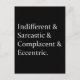 Indifferent & Sarcastic & Complacent & Eccentric funny list design! For anyone with a quirky personality! Sarcastic Funny List Design © 2020 Regina Blankenship.