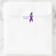 A drawing of a purple ribbon wearing a knights helm, a sword, a shield, and the word "Sarcoidosis Warrior".