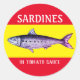 Présentez notre Sardine en Sticker Étiquette Sauce, conçu pour mettre en évidence la délicieuse et la haute qualité de vos produits sardins. Le étiquette est doté d'un design appétissant et dynamique avec des illustrations de sardines, un éclat de sauce et des éléments nautiques subtils comme des vagues ou des ancres.