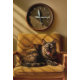 Sardine O’clock Dreamtime – Surreal Cat Art. A dreamy, surreal image where time itself revolves around a cat’s stomach. Here, a dozing feline curls on a vintage chair beneath a clock whose hands are sardines, humorously announcing it’s always dinnertime in the world of dreams. Golden light and mid-century tones lend a nostalgic, cozy feel to this tender, whimsical composition celebrating feline daydreams.