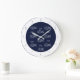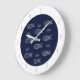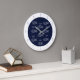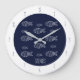 Modern kitchen wall clock featuring hand-drawn sardines line art on and deep navy background. The white circular frame adds structure and contrast, while the simple “SARDINES” text keeps the design bold and graphic.