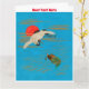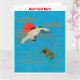 Sarus crane flying above turtle in the sea card
