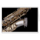 This is a fine art colour photograph image of a saxophone in the horizontal format and black background. Art clients will love this colour print or canvas.