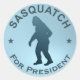 A dark silhouettes of Sasquatch (Bigfoot) on a medium blue background along with block text reading "SASQUATCH FOR PRESIDENT." Not exactly thrilled with the choice of candidates for President this time around? Looking for a Washington outsider? Here's your candidate. In fact, Bigfoot spends just about all of his time outside in Washington, Idaho, Oregon, several other states; and parts of Canada. Big enough to fill any shoes, but no need to worry that he will harangue Congress to impose a radical agenda, left or right, as he is so rarely seen. Vote for a wilder America. Vote Sasquatch! Brought to you by The Cryptozoology Political Action Committee (CPAC); Bonners Ferry, ID