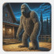 Sasquatch in front of Log Cabin in the Woods Square Sticker