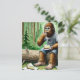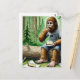 Sasquatch in mossy forest with yummy cheesecake postcard