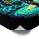 Bigfoot standing in the lake in the woods in black, teal and yellow retro vibes ai art.