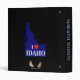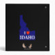 A Sasquatch Security binder for event logs, SOPs (Standard Operating Procedures), and other documents. Features the dark silhouette of a Sasquatch (Bigfoot) on a powder blue background enclosed by the outline of Idaho. Customizable text reading, "SASQUATCH SECURITY" appears on the spine, and there are two places on the front for you to add your own additional text.