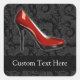 Show your sense of style with this super chic red women's dress shoe design, personalized with your name or other favourite shoe shopping or saying. Sassy, stylish and high fashion red stiletto pump heel, patent leather in vibrant rich crimson red, with showing the side and bottom. Black and dark charcoal grey damask background. All Designs Copyright © 2012 www.CuteComfy.com
