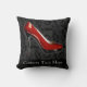 Show your sense of style with this super chic red women's dress shoe design, personalized with your name or other favourite shoe shopping or saying. Sassy, stylish and high fashion red stiletto pump heel, patent leather in vibrant rich crimson red, with showing the side and bottom. Black and dark charcoal grey damask background. All Designs Copyright © 2012 www.CuteComfy.com