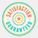 Colourful turquoise, orange and yellow circular design with a "Satisfaction Guaranteed" message
