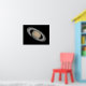 Vue de Saturne avec anneaux et aurores de pôle sud (lumières) présentes.