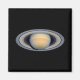 This photograph of the planet Saturn was taken by the Hubble Space Telescope, and shows the body of the planet and its rings from underneath, against the black background of space.