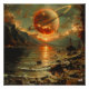 This impressive design mixes impressionism and surrealism, presenting a burning Saturn planet on the horizon of a lake landscape at dusk. With warm colors and a star-filled sky, the image evokes a feeling of wonder and tranquility, ideal for lovers of celestial art and surrealism. Perfect for T-shirts and decorative products.