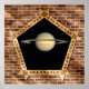 Voici une belle image de Saturne à travers une fenêtre dans un mur en brique. Ce serait un cadeau parfait pour quiconque aime l'astronomie et la science.