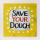 "Save Your Dough" est un design de texte amusant avec une forme d'accent blanc entourée de points blancs texturés.