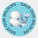 Stickers Bleus avec une jolie photo d'une Baleine Bleue au milieu. Save Out Wildlife imprimée en cercle autour des bords. Stickers enjeux de l'environnement et verts. Idéal pour tous vos projets fixes, artisanaux ou scolaires. Stick sur vos boîtes à lunch ou bouteilles d'eau.