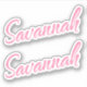 Savannah name in cursive script font in pretty pink x2. Two copies of name.