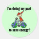 Do you do a lot of biking to help save energy? Raise environmental awareness and remind others they can do their part too by making changes such as biking to save energy and help save the earth! Save Energy T-shirts, mugs, buttons, hoodies, magnets, and other items perfect for earth day, every day!