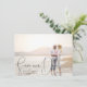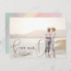 Save the Date Wedding Announcement.  Modern handwritten pen stroke calligraphy in black script text over full-bleed photo. Completely versatile do-it-yourself style layout. Easily adjust the size, style and placement of all text elements. Dark grey filter is used for display, but you can remove or change this by clicking on the advanced Customize mode. Optional rainbow marble backer.