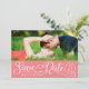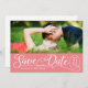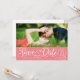 Postcard announcement of your wedding date. Use your full horizontal image with "Save our Date" on a coloured background. Customize your names and date on front and back.