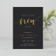 Need to postpone or reschedule your wedding? Let guests know with these elegant cards in chic black and white with real gold foil lettering accents. Design features "save our new date" at the top with your new wedding date and wedding website beneath.