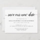 Simple and elegant save the date cards notify your guests of your rescheduled or postponed wedding date. Crisp white cards feature "save our new date" in calligraphy script lettering, with your names, new wedding date and location beneath in classic black serif type. Add additional information, like your wedding website, to the reverse side in white lettering on a contrasting black background.