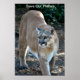 This photograph by nature photographer Neil Willens shows the imposing strength of this mountain lion, also known as cougar and puma. The cougar can leap to a height of 15 ft and a distance of up to 40 ft. It lives on deer and smaller mammals. They are the fastest cats in North America and can live up to 12 years in the wild, longer in captivity. The biggest danger to this species is lost habitat due to development and poaching. Treasure our wildlife, protect nature, and Save Our Planet.