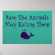 This is a Dean Johnson Fine Art design featuring a purple whale saying "Save the Animals Stop Eating Them". With dark purple text on a turquoise background. This text is customization. Gracias for supporting my Zazzle store.