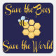 This environmental design features a honey bee flying by a honeycomb and the caption "Save the Bees Save the World." Save the honey bees. No pesticides.