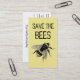 Pass these important cards out to all your friends, fellow students, and at church functions. We need to save the bees ... our crops are at stake! On the back of the card are bee facts and tips. All info is from "Earthjustice | because the earth needs a good lawyer."