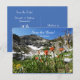 Our photograph of beautiful mountain scenery with an icy lake and colourful wildflowers decorates this 50th Wedding Anniversary "Save the Date" postcard announcement. (or ANY number of years) The reverse has white lettering on a blue background. Very elegant and classy! You can easily change the text for names, event type, date, etc. Also perfect for vow renewal or other special occasion. Original photograph by Alan Socolik. All Rights Reserved © 2015 Alan & Marcia Socolik.