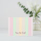 Pastel stripes decorate this classy 50th Birthday "Save the Date" postcard. Both sides have deep purple lettering. Very classy! You can easily change the text for name, age, date, location, etc. Matching postage stamp for postcards is zazzle product 172369265050547052. All Rights Reserved © 2014 Alan & Marcia Socolik.