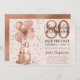 This fabulous 80th birthday party Save the Date card featuring a 2-layer rose gold cake with rose gold balloons, the number 80 in rose gold and shiny rose gold confetti would be perfect for asking people to put this special date aside for the upcoming 80th Birthday Party. It is traditional and classic while being fresh, modern and contemporary. The back is a coordinating rose gold foil.