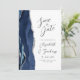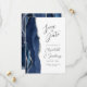 Le bord gauche de cet élégant mariage moderne, à l'exception de la carte de date, est doté d'une bordure en aquarelle bleu marine ornée d'une parties scintillant en faux argent. Le texte personnalisable combine écriture manuscrite grise au fusain, cuivre et polices italiques sur un arrière - plan blanc. L'envers est assorti d'un design d'agate bleu marine et argent.