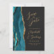 Le bord gauche de cet élégant mariage moderne, à l'exception de la carte de date, est doté d'une bordure en aquarelle bleue turquoise, recouverte d'une parties scintillant en faux or. Le texte personnalisable combine écriture manuscrite dorée, cuivre et polices italiques sur un arrière - plan noir ardoise. L'envers présente un design d'agate bleu et or turquoise assorti.