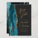Save The Date Agate Turquoise Blue Gold Script Dark Mariage