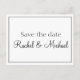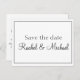 A lovely save the date postcard, this item features a white background with text written in lovely black font. Personalize yours today!