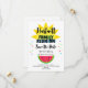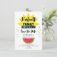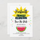 Amusement d'été, nourriture d'été, soleil d'été tout dans un faire-part de réunion familiale Save the Date. Couleur, soleil brillant et grande tranche de pastèque. Bonne réunion. Prenez beaucoup de photos !