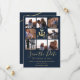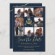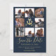 Marine bleu et or nautique huit photo bloc cadre mariage enregistrer le carte photo date avec couple monogramme et écriture manuscrite style de police. L'ancre d'or au centre se transporte vers l'envers de la carte avec une ancre d'or et un noeud de corde.