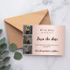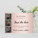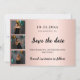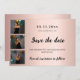 Une carte Save the Date pour une fête d'anniversaire de 50e (ou tout autre âge). arrière - plan rose de gradient or. Le texte : Save the Date est écrit avec un grand script de style à la main tendance. Personnalisez et ajoutez 3 photos.