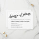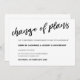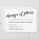 Élégante carte noire et blanche manuscrite de report de date de mariage avec un "Changement de plans" calligraphié.