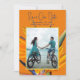 Faire-part de mariage pour sauver notre date avec des fleurs d'oiseau de paradis et modèle de photo. Une carte accrocheuse avec une orientation verticale et une photo encadrée sur un fond de fleurs hawaïennes orange vif. Les polices modernes sont utilisées dans une couleur bleu foncé. Le bleu foncé correspondant au verso avec une autre image florale. Une photo du couple rend superflu les noms, ou ajoutez des noms aux lignes de date et de lieu. Ce design est également disponible en téléchargement instantané.
